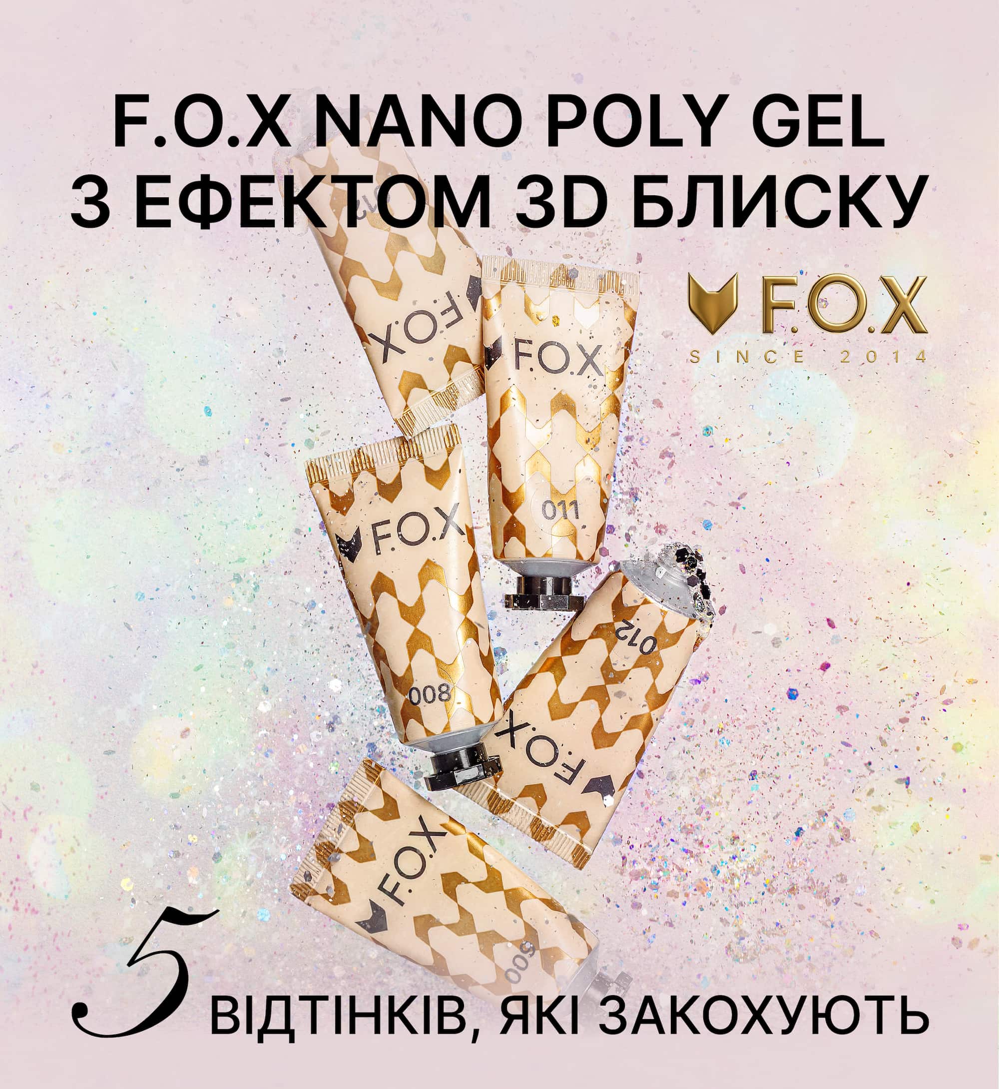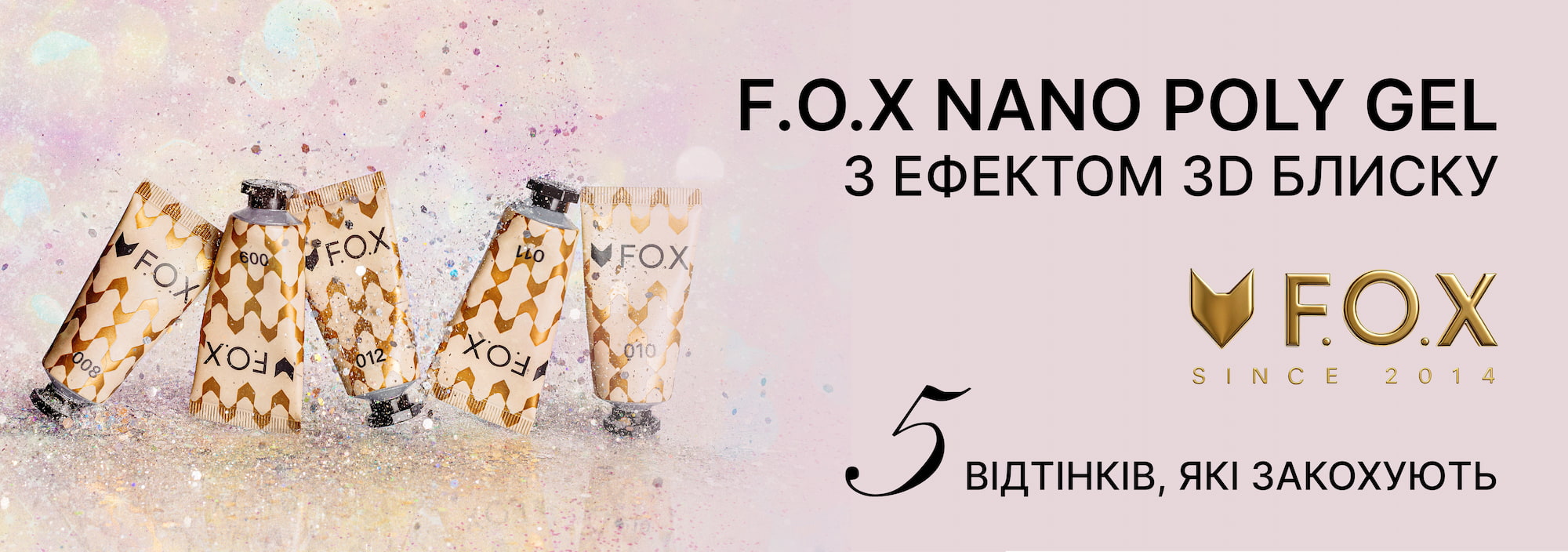Полігель F.O.X Poly gel Nano 006, (тюб) рожевий з дрібним шимером